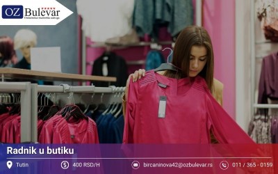 | 23.02.2026 Studentski posao - Radnik u butiku | Omladinska zadruga Bulevar Omladinska i studentska zadruga Bulevar vam nudi posao: Posao za studente na poziciji: Radnik u butiku Mesto: Inđija Opis posla: Slaganje i izlaganje ... | PrijavaKomentar | |