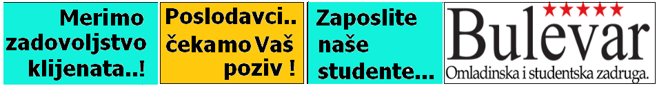 Studentska i omladinska zadruga Bulevar ima vodeću ulogu na planu zapošljavanja studenata i omladine u Gradu Beogradu i svim veim gradovima Srbije.(pogledajte referentnu listu partnera)