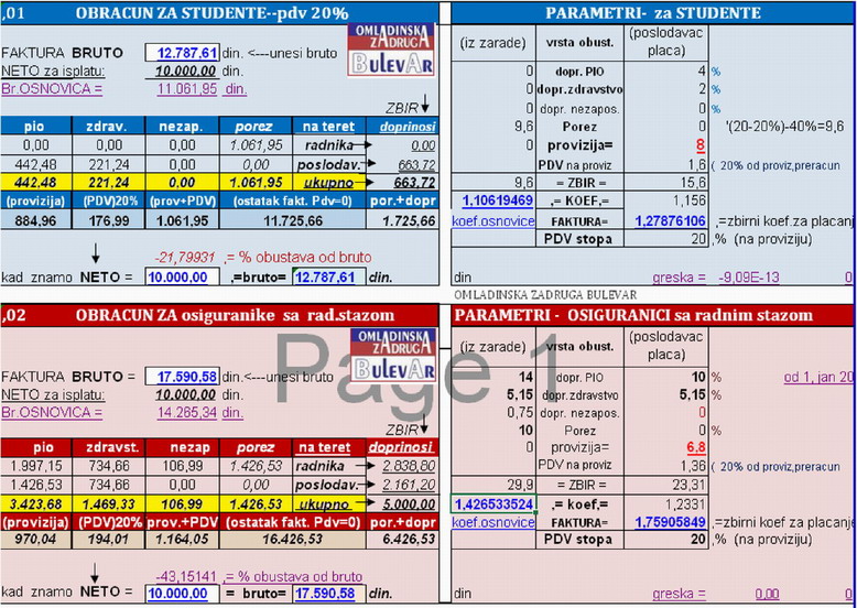 -Primer Kalkulacije za iznos 10.000,00 din neto zarade -Preuzmite ponudu sa Cenama rada . -Podaci za Identifikaciju Omladinske zadruge. -Iznos Najnize zakonske osnovice za uplatu socijalnih doprinosa 2026 |