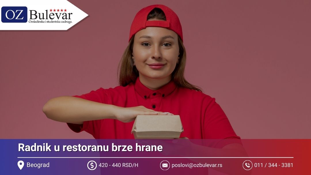Studentski posao - Radnik u restoranu brze hrane | Omladinska zadruga Bulevar