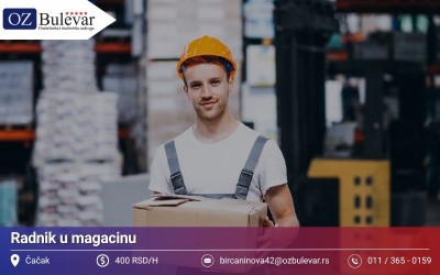 | 10.03.2026 Studentski posao - Radnik u magacinu | Omladinska zadruga Bulevar Omladinska i studentska zadruga Bulevar vam nudi posao: Posao za studente na poziciji: Radnik u magacinu Mesto: Borča, Zrenjaninski put Opis posla: Prijem ... | PrijavaKomentar | |