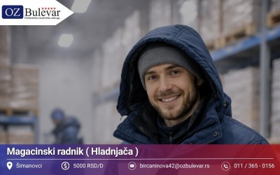 | 09.04.2026 Studentski posao - Magacinski radnik (Hladnjača) | Omladinska zadruga Bulevar Omladinska i studentska zadruga Bulevar vam nudi posao: Posao za studente na poziciji: Magacinski radnik (Hladnjača) Mesto: Šimanovci Opis posla: Priprema ... | PrijavaKomentar | |
